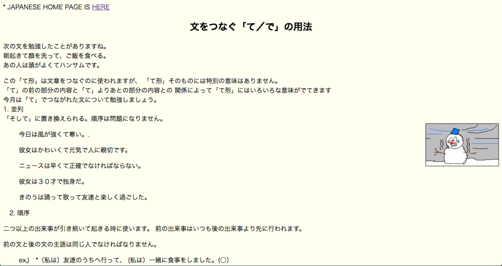 日本文化研究会 文をつなぐ「て/で」の用法より引用